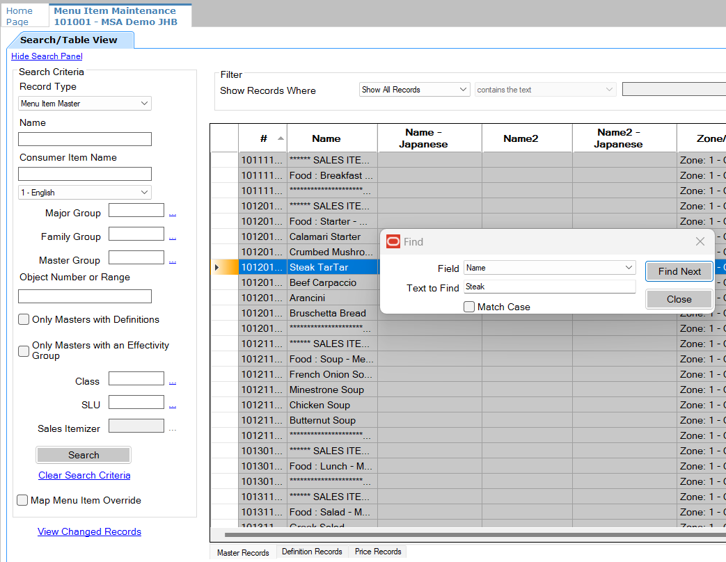 Simphony Menu Item Maintenance