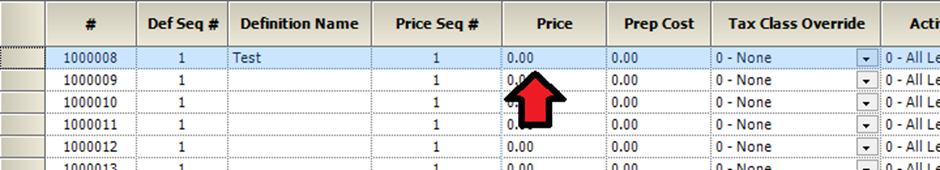 Ensure the item follows the same Master → Definition → Price structure
